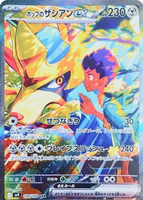 Hop's Zacian ex's Pokemon cards are available in at least 3 sets. Hop's Zacian ex's biggest 7-day price movers are 2025 Scarlet & Violet: Journey Together #176/159 Ultra Rare (Full Art), 2025 Scarlet & Violet: Journey Together #111/159 Double Rare, and 2025 Japanese Scarlet & Violet: Battle Partners #128/100 Special Art Rare.