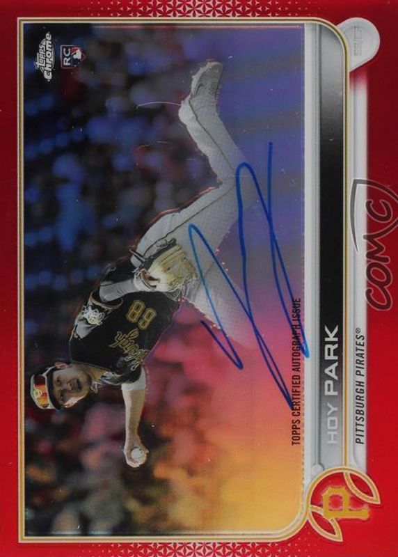 The biggest 30-day change Hoy Park cards are 2022 Topps Chrome #RA-HPA Rookie Auto - Red Refractor /5, 2022 Topps Chrome Cosmic #88 Orange Galactic Refractor /25, and 2022 Topps Chrome #RA-HPA Rookie Auto - Blue RayWave Refractor /150.