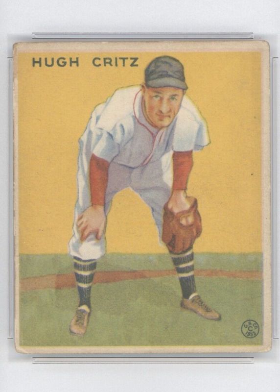 Hugh Critz's Baseball cards are available in at least 2 sets. Hugh Critz's biggest 7-day price movers are 1933 Goudey #238 Base, 1933 Goudey #3 Base, and 1934 Goudey #17 Base.