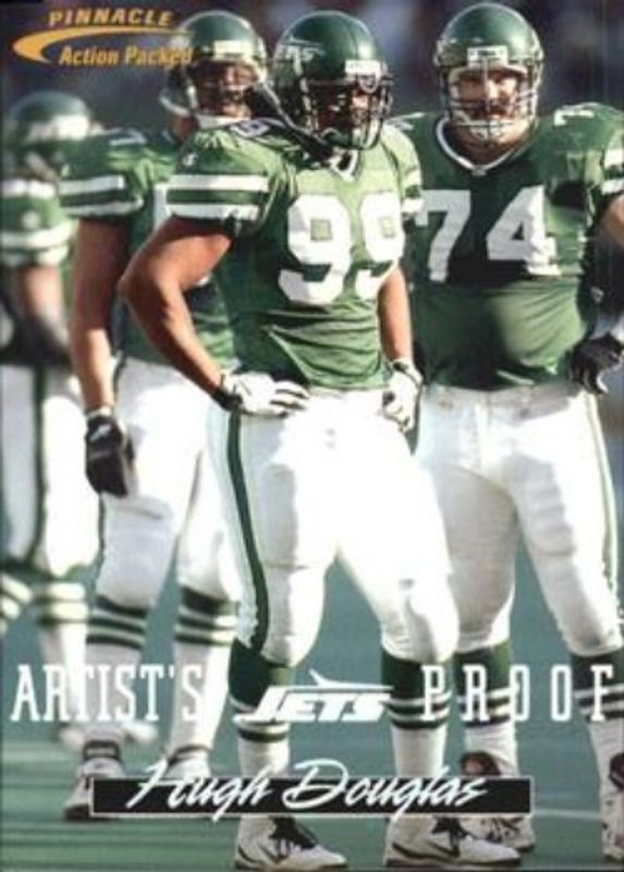 Hugh Douglas' Football cards are available in at least 17 sets. Hugh Douglas' biggest 7-day price movers are 1996 Action Packed Flagship #24 Artist's Proofs, 1996 Action Packed Flagship #24 Base, and 1999 Metal Universe #5 Base.
