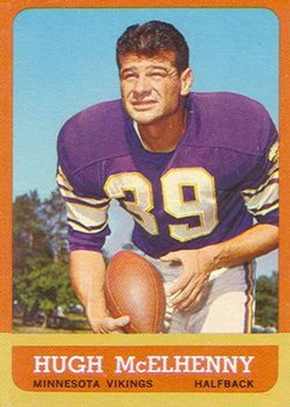 Hugh McElhenny's Football cards are available in at least 19 sets. Hugh McElhenny's biggest 7-day price movers are 1963 Topps #103 Base, 1962 Topps #92 Base, and 1962 Topps #19 Bucks.