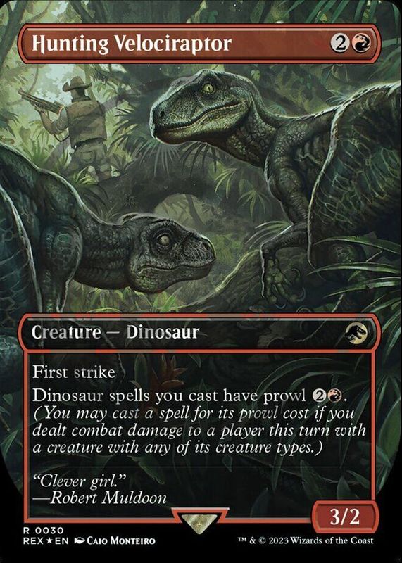 Hunting Velociraptor's Magic: The Gathering cards are available in at least 1 sets. Hunting Velociraptor's biggest 7-day price movers are 2023 Universes Beyond: Jurassic World Collection #30 Embossed, and 2023 Universes Beyond: Jurassic World Collection #0030 Embossed.