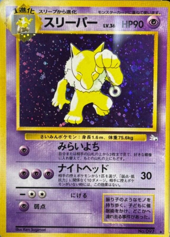 Hypno's Pokemon cards are available in at least 22 sets. Hypno's biggest 7-day price movers are 2016 XY: BREAKpoint #051/122 Base, 1997 Japanese Mystery of the Fossils #97 Holo, and 2003 Aquapolis #H12 Holo.