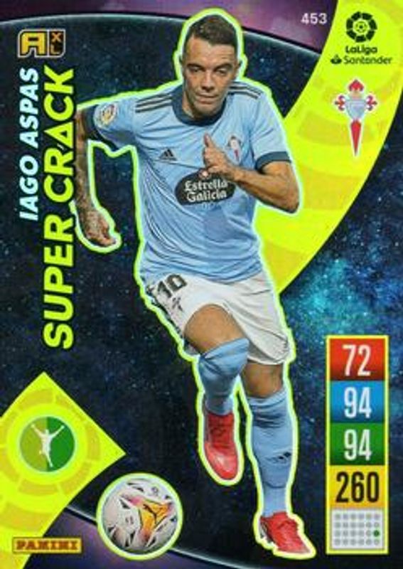 The biggest 30-day change Iago Aspas cards are 2021 Panini Adrenalyn XL LaLiga Santander #453 Base, 2021 Panini Adrenalyn XL LaLiga Santander #126 Base, and 2023 Panini LaLiga Este Chicles Stickers #28 Base.