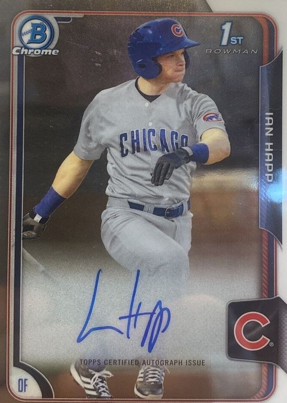 Ian Happ's Baseball cards are available in at least 61 sets. Ian Happ's biggest 7-day price movers are 2015 Bowman Draft #BCA-IH Chrome DP Auto (1st), 2015 Bowman Draft #BCA-IH Chrome DP Auto - Refractor (1st), and 2017 Topps Chrome Update #HMT66 Autographs - Refractor.