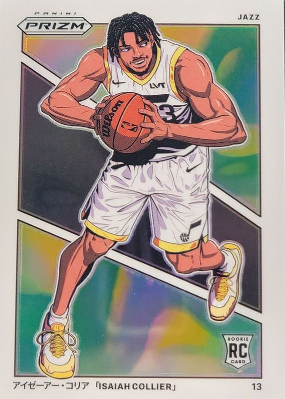 Isaiah Collier's Basketball cards are available in at least 40 sets. Isaiah Collier's biggest 7-day price movers are 2025 Topps #133 Golden Mirror Image Variation /(SSP), 2024 Prizm #2 Manga /(SSP), and 2024 Select #178 Premier Level Orange /65.