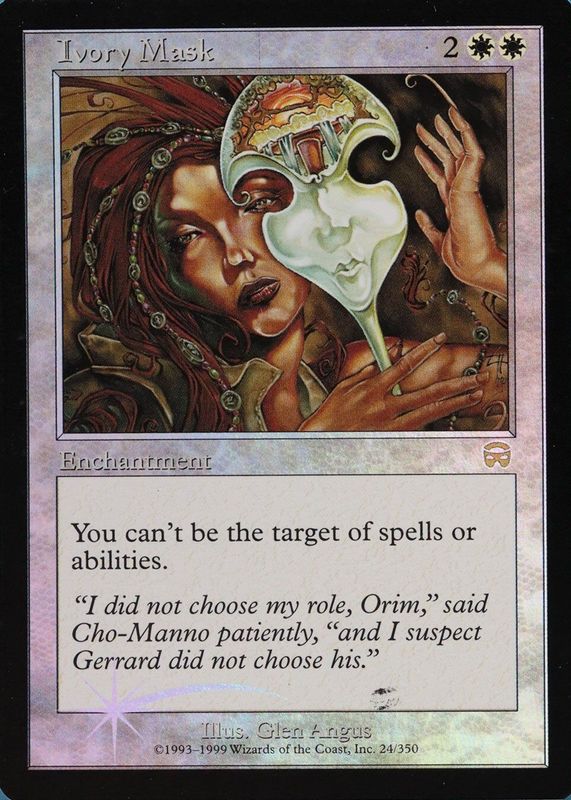 Ivory Mask's Magic: The Gathering cards are available in at least 1 sets. Ivory Mask's biggest 7-day price movers are 1999 Mercadian Masques #24 Foil, and 1999 Mercadian Masques #24 Base.
