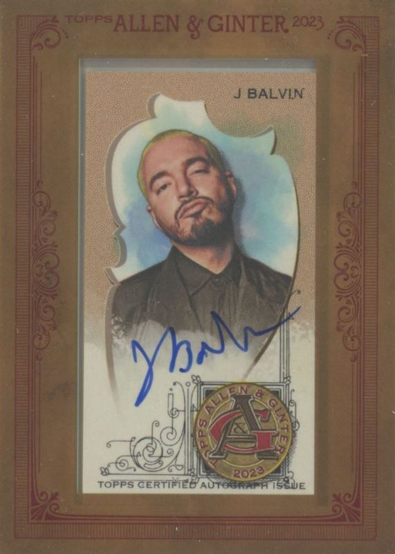 J Balvin's Pop Culture cards are available in at least 1 sets. J Balvin's biggest 7-day price movers are 2023 Topps Allen & Ginter #MA-JBA Framed Mini Auto.