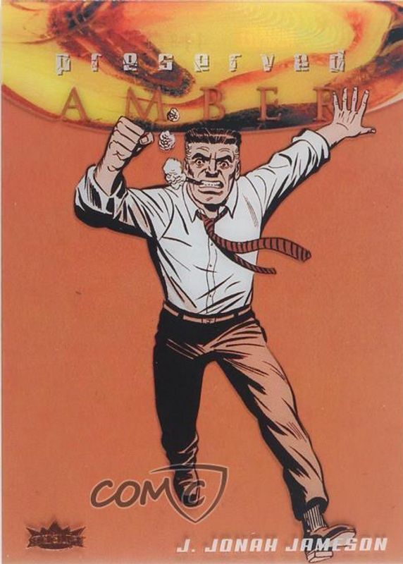 J. Jonah Jameson's Marvel cards are available in at least 7 sets. J. Jonah Jameson's biggest 7-day price movers are 2017 Fleer Ultra Spider-Man #PA20 Preserved Amber Black & White /175, 2017 Fleer Ultra Spider-Man #EX26 EX Century, and 2017 Fleer Ultra Spider-Man #PA20 Preserved Amber City Scape /15.