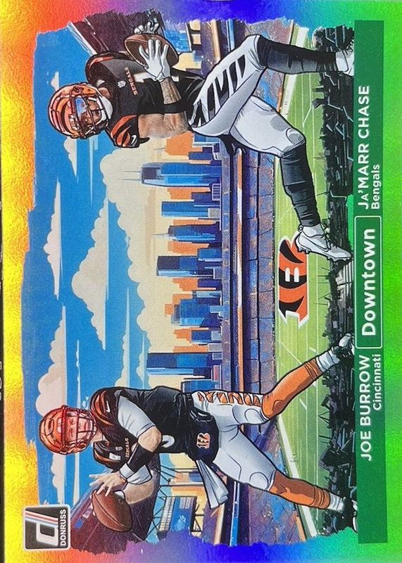Ja'Marr Chase / Joe Burrow's Football cards are available in at least 4 sets. Ja'Marr Chase / Joe Burrow's biggest 7-day price movers are 2024 Donruss #4 Downtown Horizontal /(SSP), 2024 Donruss #4 Downtown Horizontal - Black /1, and 2024 Donruss #4 Downtown Horizontal - Gold /10.