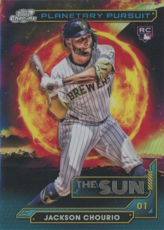 Jackson Chourio's Baseball cards are available in at least 95 sets. Jackson Chourio's biggest 7-day price movers are 2024 Topps Chrome Update #USC30 Rookie Debut, 2024 Topps Chrome Update #USC30 Rookie Debut - Refractor, and 2024 Topps Chrome #161 Prism Refractor.