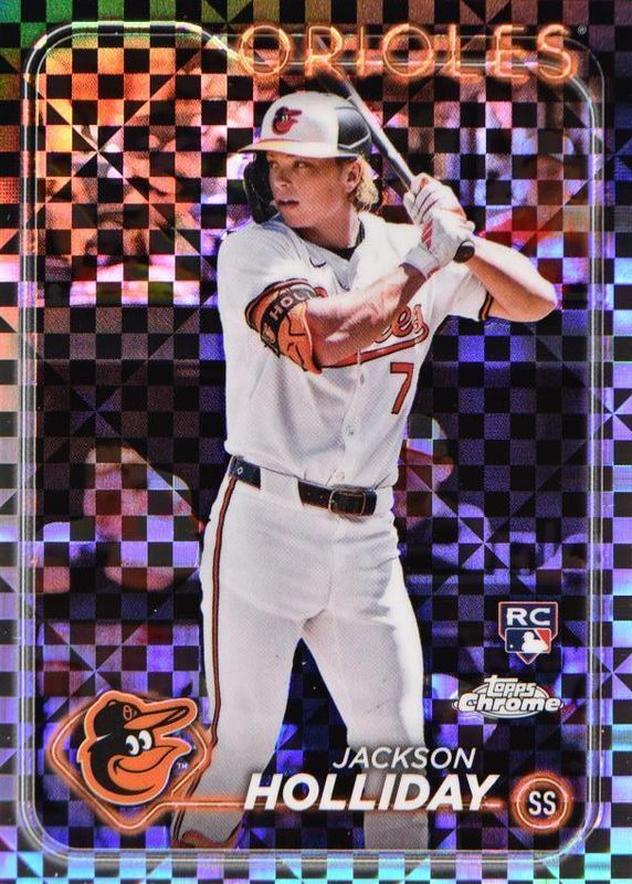 Jackson Holliday's Baseball cards are available in at least 73 sets. Jackson Holliday's biggest 7-day price movers are 2024 Topps Chrome Cosmic #ET-8 Extraterrestrial Talent, 2024 Topps Update #US50 Base, and 2024 Bowman #BTP-1 Bowman Scouts' Top 100.
