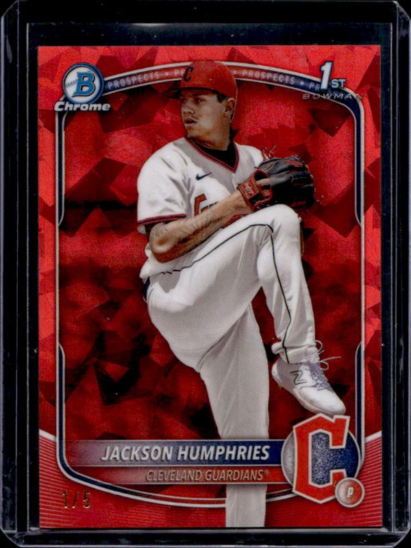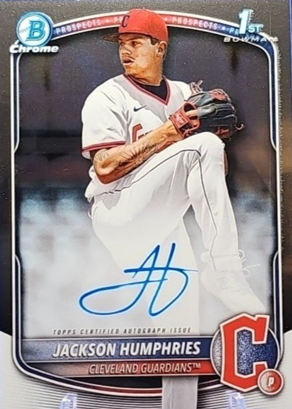Jackson Humphries' Baseball cards are available in at least 2 sets. Jackson Humphries' biggest 7-day price movers are 2025 Bowman #CPA-JHU Chrome Prospect Auto (1st), 2025 Bowman #CPA-JHU Chrome Prospect Auto - Black Refractor /10 (1st), and 2025 Bowman #CPA-JHU Chrome Prospect Auto - Black X-Fractor /10 (1st).