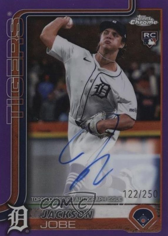 Jackson Jobe's Baseball cards are available in at least 36 sets. Jackson Jobe's biggest 7-day price movers are 2025 Topps Update #US193 Rookie Debut - Sandglitter, 2025 Topps Chrome Cosmic #142 Nucleus Refractor, and 2025 Topps Finest #35 Common.