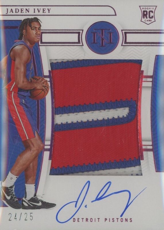 Jaden Ivey's Basketball cards are available in at least 75 sets. Jaden Ivey's biggest 7-day price movers are 2022 National Treasures #145 Rookie Patch Auto - Pink /25, 2022 Prizm Draft Picks #SG-JI Stained Glass /(SSP), and 2022 Optic #241 Rated Rookie Signatures - Black Pandora /25.