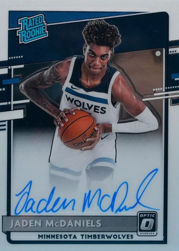 Jaden McDaniels' Basketball cards are available in at least 42 sets. Jaden McDaniels' biggest 7-day price movers are 2020 Prizm #277 Base, 2020 Optic #178 Hyper Pink, and 2020 Optic #178 Rated Rookie Signatures.