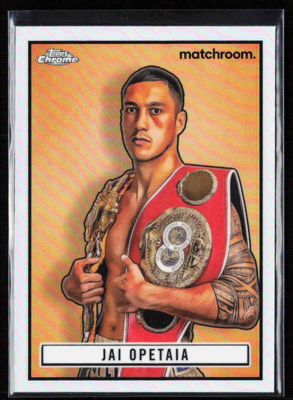Jai Opetaia's Boxing cards are available in at least 1 sets. Jai Opetaia's biggest 7-day price movers are 2024 Topps Chrome #TR-33 1951 Ringside, 2024 Topps Chrome #TR-33 1951 Ringside - Red Refractor /5, and 2024 Topps Chrome #TRA-JO 1951 Ringside Autographs - Red Refractor /5.