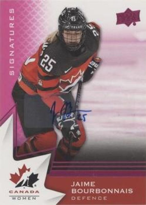 Jaime Bourbonnais' Hockey cards are available in at least 4 sets. Jaime Bourbonnais' biggest 7-day price movers are 2020 Upper Deck Team Canada Juniors #53 Autographs - Purple, 2020 Upper Deck Team Canada Juniors #53 Base, and 2020 Upper Deck Team Canada Juniors #53 Autographs - Black /5.
