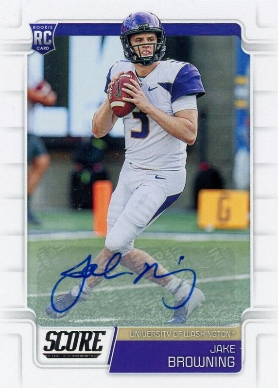 Jake Browning's Football cards are available in at least 3 sets. Jake Browning's biggest 7-day price movers are 2019 Score #416 Signatures, 2019 Luminance #142 Blue /99, and 2019 Luminance #142 Orange /25.