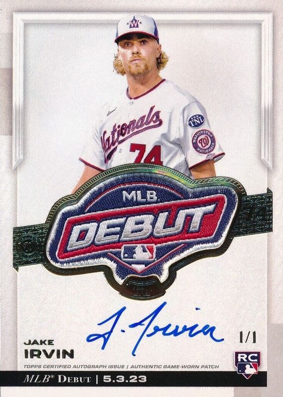 Jake Irvin's Baseball cards are available in at least 3 sets. Jake Irvin's biggest 7-day price movers are 2023 Topps Chrome Update #RDP-JI Rookie Debut Patch Autographs /1, 2024 Topps #621 Golden Mirror Image Variation /(SSP), and 2025 Topps #197 Golden Mirror Image Variation /(SSP).