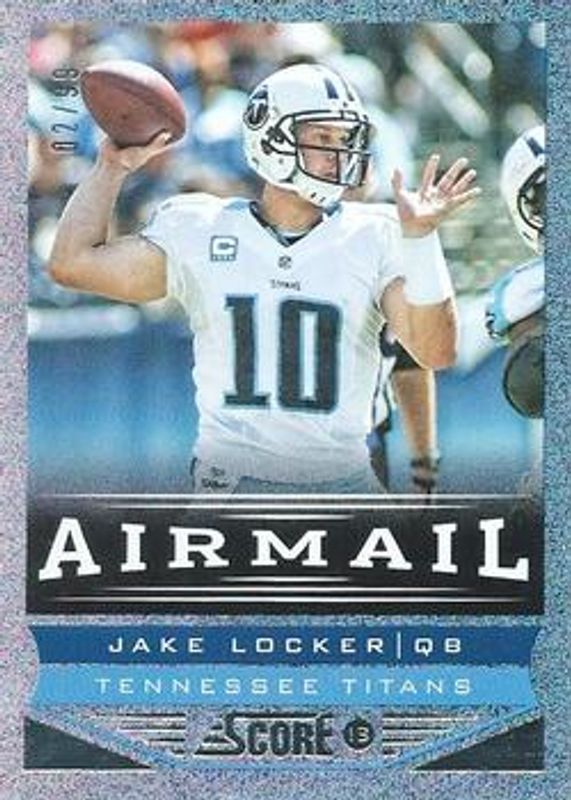 Jake Locker's Football cards are available in at least 70 sets. Jake Locker's biggest 7-day price movers are 2013 Score #251 Showcase /99, 2013 Score #207 Showcase /99, and 2013 Select #32 Green /15.