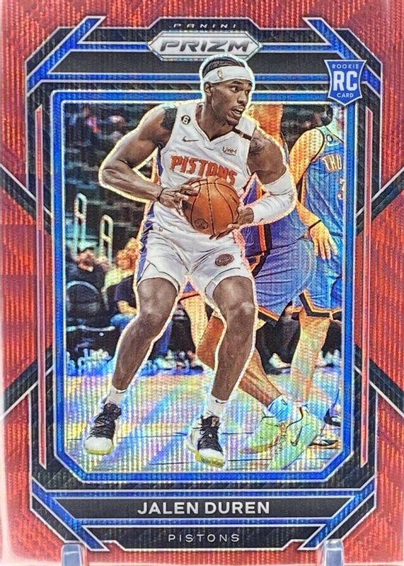 Jalen Duren's Basketball cards are available in at least 53 sets. Jalen Duren's biggest 7-day price movers are 2022 Optic #227 Base, 2022 Select #98 Concourse Silver, and 2022 Prizm #20 Emergent - Green.