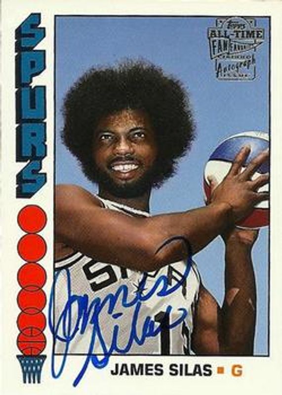 James Silas' Basketball cards are available in at least 17 sets. James Silas' biggest 7-day price movers are 2005 Topps 1952 Style #FFA-JSI All Time Fan Favorites Autographs, 2005 Topps 1952 Style #FFA-JSI All Time Fan Favorites Autographs Rainbow Foilboard /10, and 2020 Immaculate #HS-JSI Heralded Signatures - Gold /10.