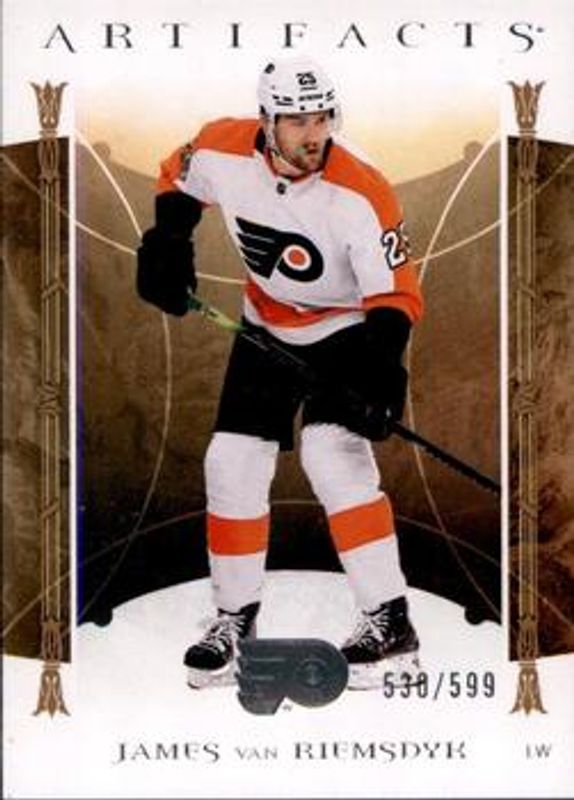 James van Riemsdyk's Hockey cards are available in at least 92 sets. James van Riemsdyk's biggest 7-day price movers are 2022 Upper Deck Artifacts #106 Material - Purple /15, 2022 Upper Deck Ice #14 Greyscale /99, and 2022 Upper Deck Artifacts #106 Spectrum Jungle /15.