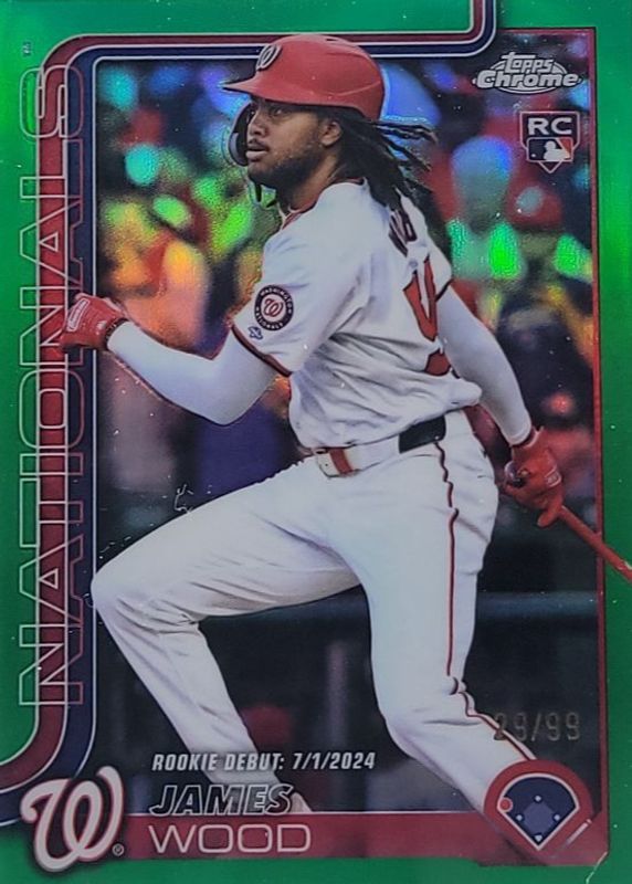 James Wood's Baseball cards are available in at least 53 sets. James Wood's biggest 7-day price movers are 2025 Topps #TG-18 Training Grounds, 2025 Topps Chrome Update #NT-25 Night Terrors, and 2025 Bowman #29 Red Rookie Logo Chrome.