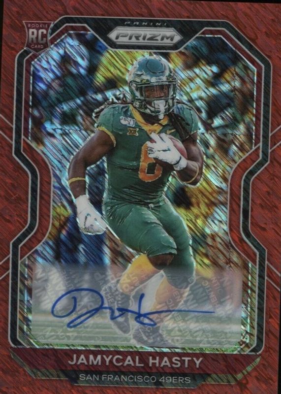 JaMycal Hasty's Football cards are available in at least 2 sets. JaMycal Hasty's biggest 7-day price movers are 2020 Prizm #303 Rookie Autographs - Red Shimmer /35, 2020 Prizm #303 Rookie Autographs - Red Wave /149, and 2020 Prizm #303 Rookie Autographs - Purple Pulsar.