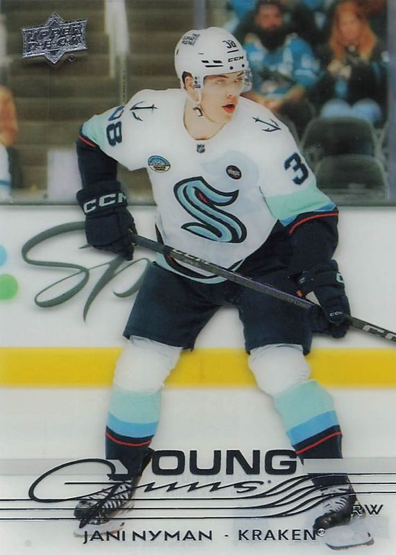 Jani Nyman's Hockey cards are available in at least 3 sets. Jani Nyman's biggest 7-day price movers are 2025 Upper Deck #209 Young Guns Base, 2025 Upper Deck #209 Young Guns - Clear Cut, and 2025 Upper Deck #209 Young Guns - Deluxe /250.