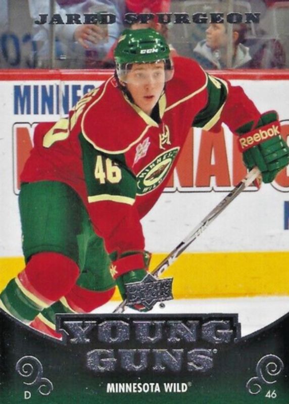 Jared Spurgeon's Hockey cards are available in at least 62 sets. Jared Spurgeon's biggest 7-day price movers are 2010 Upper Deck #472 Young Guns Base, 2022 Parkhurst #22 Printing Plates Magenta /1, and 2022 Parkhurst #22 Gold Foil.