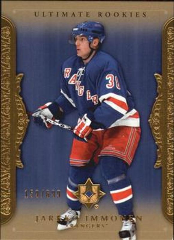 Jarkko Immonen's Hockey cards are available in at least 18 sets. Jarkko Immonen's biggest 7-day price movers are 2006 In The Game Heroes & Prospects #GUE-17 Game Used Emblems Gold, 2006 In The Game Heroes & Prospects #GUE-17 Game Used Emblems, and 2006 In The Game Heroes & Prospects #GUN-17 Game Used Numbers.