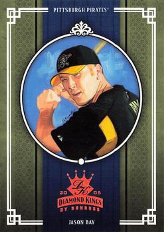 Jason Bay's Baseball cards are available in at least 17 sets. Jason Bay's biggest 7-day price movers are 2005 Diamond Kings #184 Bronze /50, 2005 Diamond Kings #386 Bronze /50, and 2005 Diamond Kings #184 Framed Blue Platinum /1.