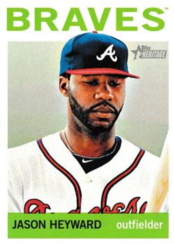 Jason Heyward's Baseball cards are available in at least 41 sets. Jason Heyward's biggest 7-day price movers are 2013 Topps Heritage #300 Base, 2013 Topps Heritage #CCR-JH Clubhouse Collection Relics, and 2013 Topps Heritage #CCR-JH Clubhouse Collection Relics - Gold /99.