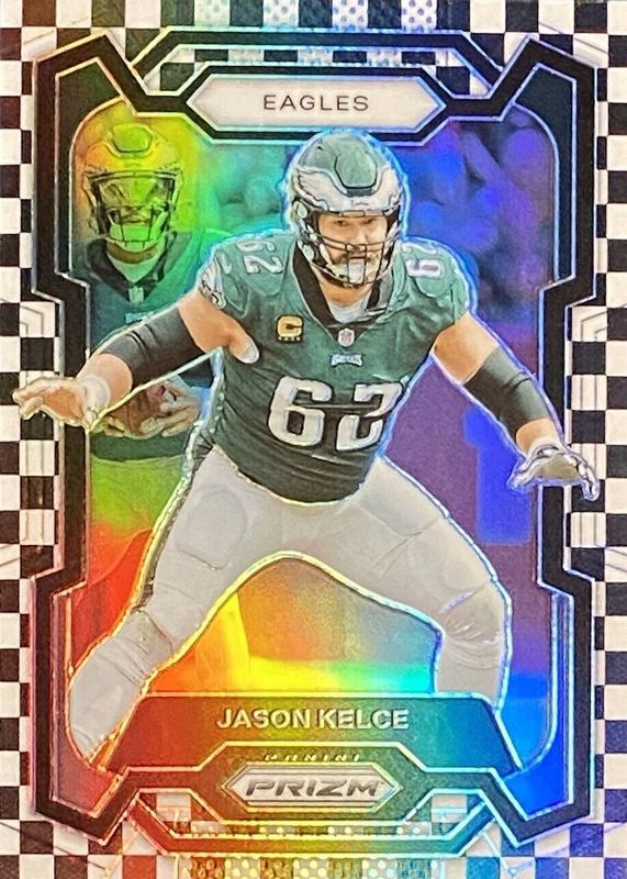 Jason Kelce's Football cards are available in at least 22 sets. Jason Kelce's biggest 7-day price movers are 2023 Prizm #245 Black & White Checker /(SSP), 2025 Topps #FP-1 First Pitch - Pink Foil, and 2025 Absolute #22 Kaboom! Horizontal /(SSP).