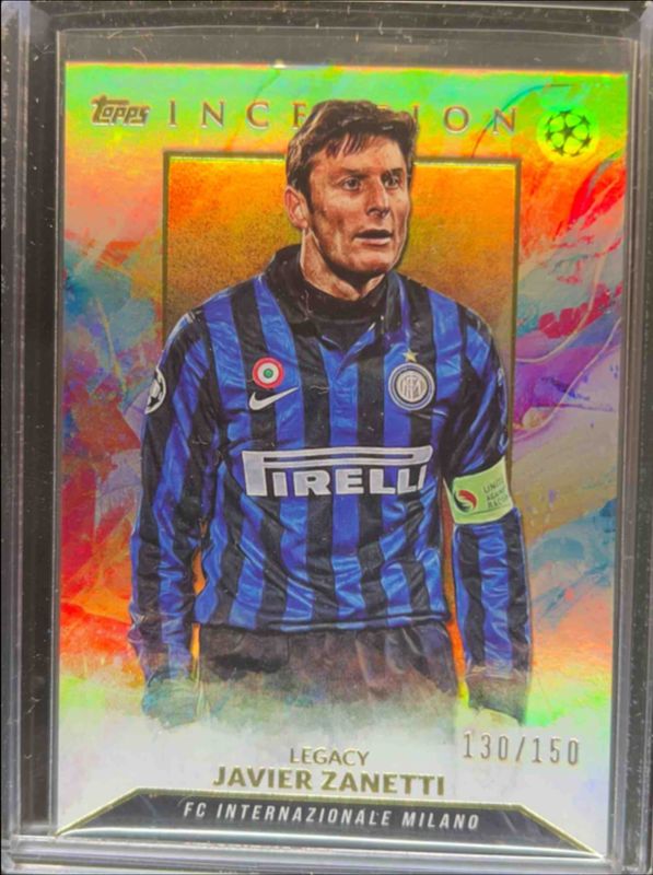 Javier Zanetti's Soccer cards are available in at least 31 sets. Javier Zanetti's biggest 7-day price movers are 2023 Topps Inception UEFA Club Competitions Rainbow /150, 2023 Topps Inception UEFA Club Competitions Base, and 2023 Topps Inception UEFA Club Competitions #18 Red /10.