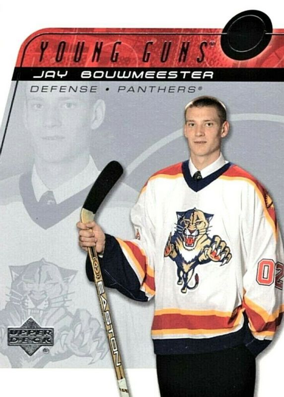 Jay Bouwmeester's Hockey cards are available in at least 184 sets. Jay Bouwmeester's biggest 7-day price movers are 2002 Upper Deck #236 Young Guns Base, 2004 Pacific #109 Base, and 2004 Pacific #109 Red.