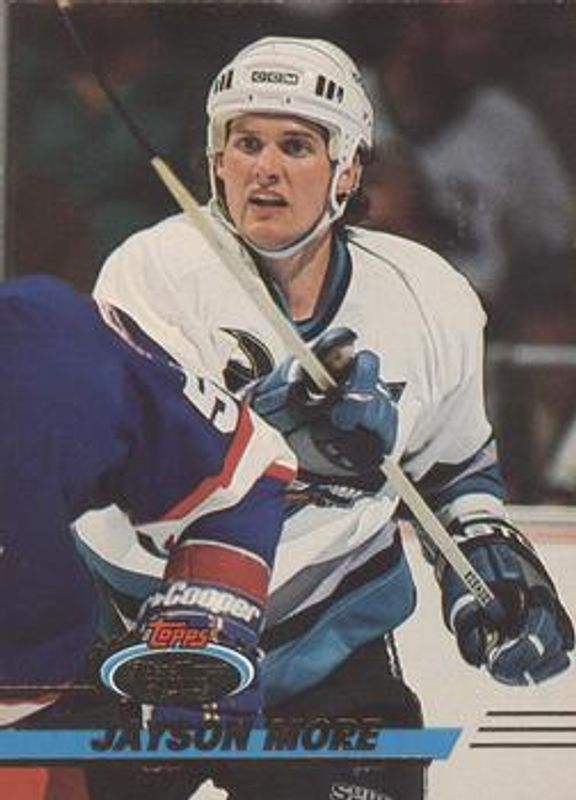 Jay More's Hockey cards are available in at least 15 sets. Jay More's biggest 7-day price movers are 1993 O-Pee-Chee #208 Base, 1993 O-Pee-Chee #208 First Day Issue, and 1992 Score #147 Base.