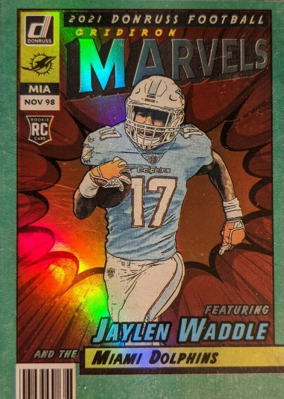 Jaylen Waddle's Football cards are available in at least 61 sets. Jaylen Waddle's biggest 7-day price movers are 2021 Mosaic #248 NFL Debut - Pink Camo, 2021 Prizm #V-338 Variation - Silver, and 2021 Optic #208 Holo.