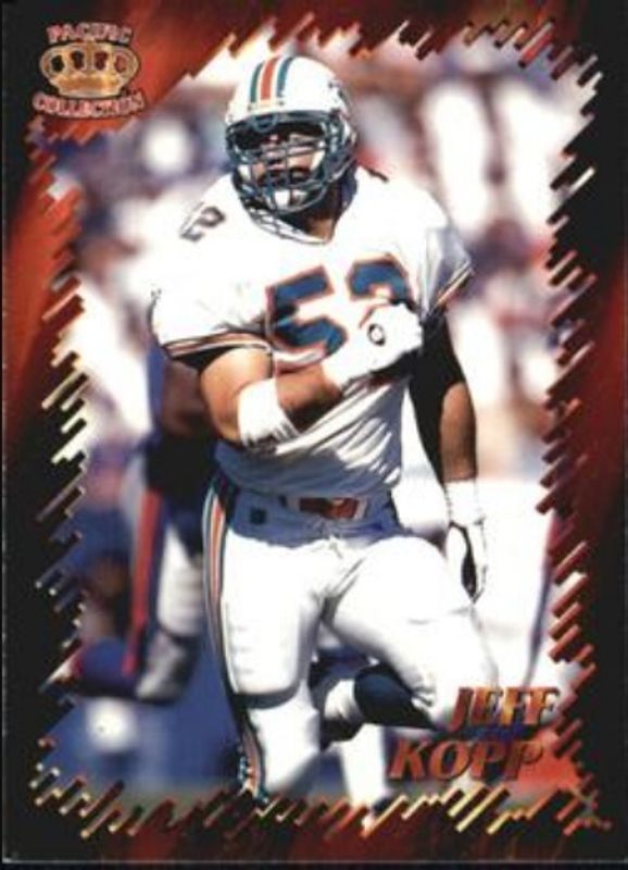 Jeff Kopp's Football cards are available in at least 1 sets. Jeff Kopp's biggest 7-day price movers are 1996 Pacific Dynagon #BKS-51 Best Kept Secrets.