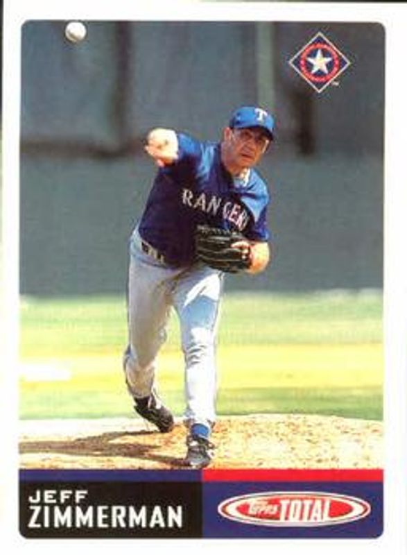 Jeff Zimmerman's Baseball cards are available in at least 8 sets. Jeff Zimmerman's biggest 7-day price movers are 2002 Topps Total #601 Base, 1999 Fleer Tradition Update #U-9 Base, and 1999 Fleer Tradition #609 Millennium.