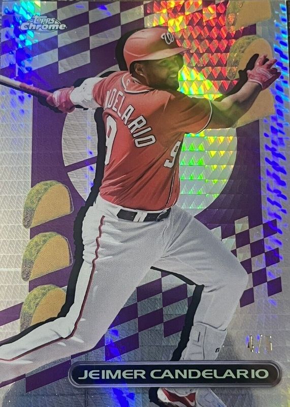 The biggest 30-day change Jeimer Candelario cards are 2023 Topps Chrome #TF-180 TacoFractor /5, 2012 Bowman #BCP20 Chrome Prospect Auto, and 2012 Bowman #BCP20 Chrome (1st).