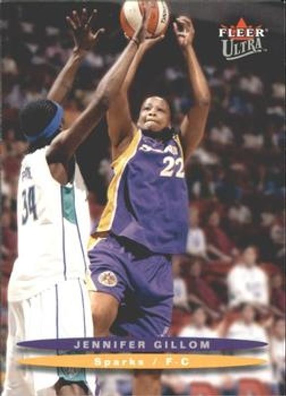 Jennifer Gillom's Basketball cards are available in at least 3 sets. Jennifer Gillom's biggest 7-day price movers are 2003 Fleer Ultra WNBA #97 Base, 2003 Fleer Ultra WNBA #97 Gold Medallion /25, and 2002 Fleer Ultra WNBA #4-SL Summer of Love.