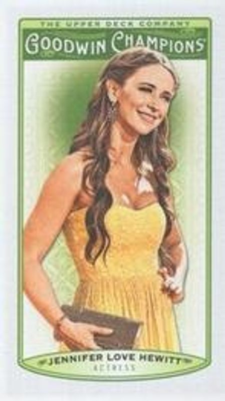 Jennifer Love Hewitt's Multi-Sport cards are available in at least 1 sets. Jennifer Love Hewitt's biggest 7-day price movers are 2019 Upper Deck Goodwin Champions #21 Mini, 2019 Upper Deck Goodwin Champions #A-JL Autographs Inscribed /25, and 2019 Upper Deck Goodwin Champions #A-JL Autographs.