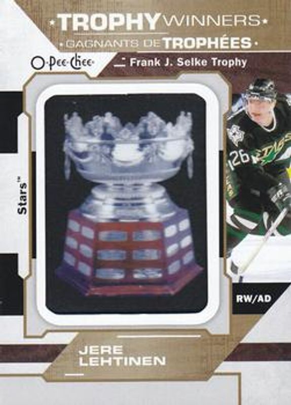 Jere Lehtinen's Hockey cards are available in at least 159 sets. Jere Lehtinen's biggest 7-day price movers are 2019 O-Pee-Chee #P-19 Trophy Patches, 2009 O-Pee-Chee #331 Rainbow, and 2009 O-Pee-Chee #331 Base.