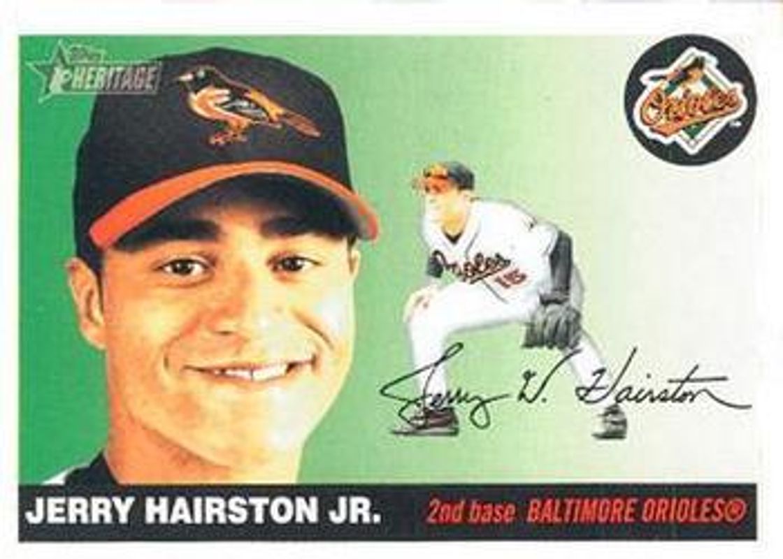 Jerry Hairston Jr.'s Baseball cards are available in at least 8 sets. Jerry Hairston Jr.'s biggest 7-day price movers are 2004 Topps Heritage #209 Base, 2010 Topps Heritage #116 Base, and 2012 Topps Heritage #431 Base.