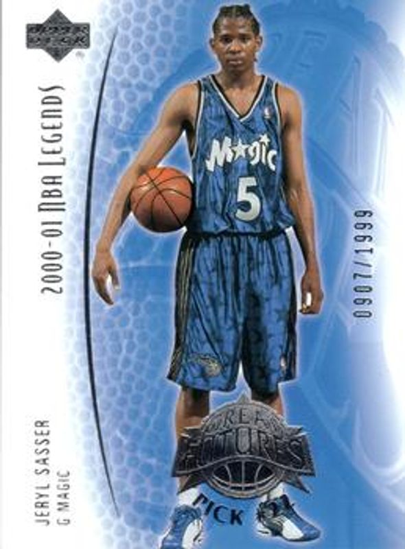 Jeryl Sasser's Basketball cards are available in at least 15 sets. Jeryl Sasser's biggest 7-day price movers are 2000 Upper Deck Legends #111 Base, 2001 Upper Deck PlayMakers Limited #101 Base, and 2001 Upper Deck Sweet Shot #102 Rookie Memorabilia /1200.