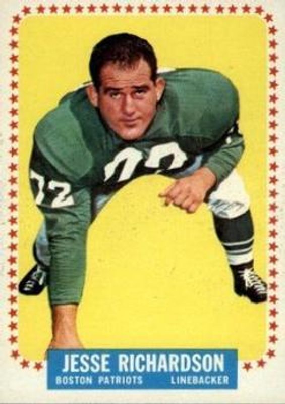 Jesse Richardson's Football cards are available in at least 2 sets. Jesse Richardson's biggest 7-day price movers are 1964 Topps #18 Base, and 1960 Topps #91 Base.