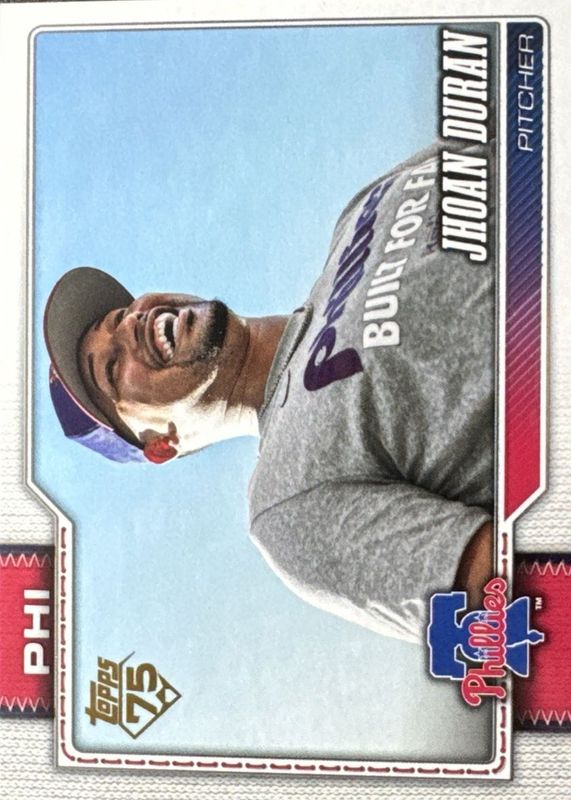 Jhoan Duran's Baseball cards are available in at least 19 sets. Jhoan Duran's biggest 7-day price movers are 2026 Topps #83 Golden Mirror Variation /(SSP), 2019 Bowman Chrome #CPA-JDU Prospect Auto - Green Refractor /99 (1st), and 2025 Topps Heritage #74 Chrome - Silver Sparkle Refractor.